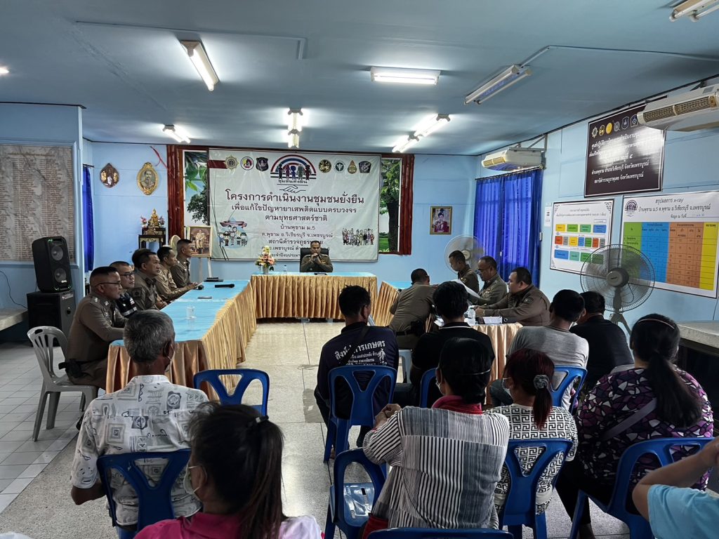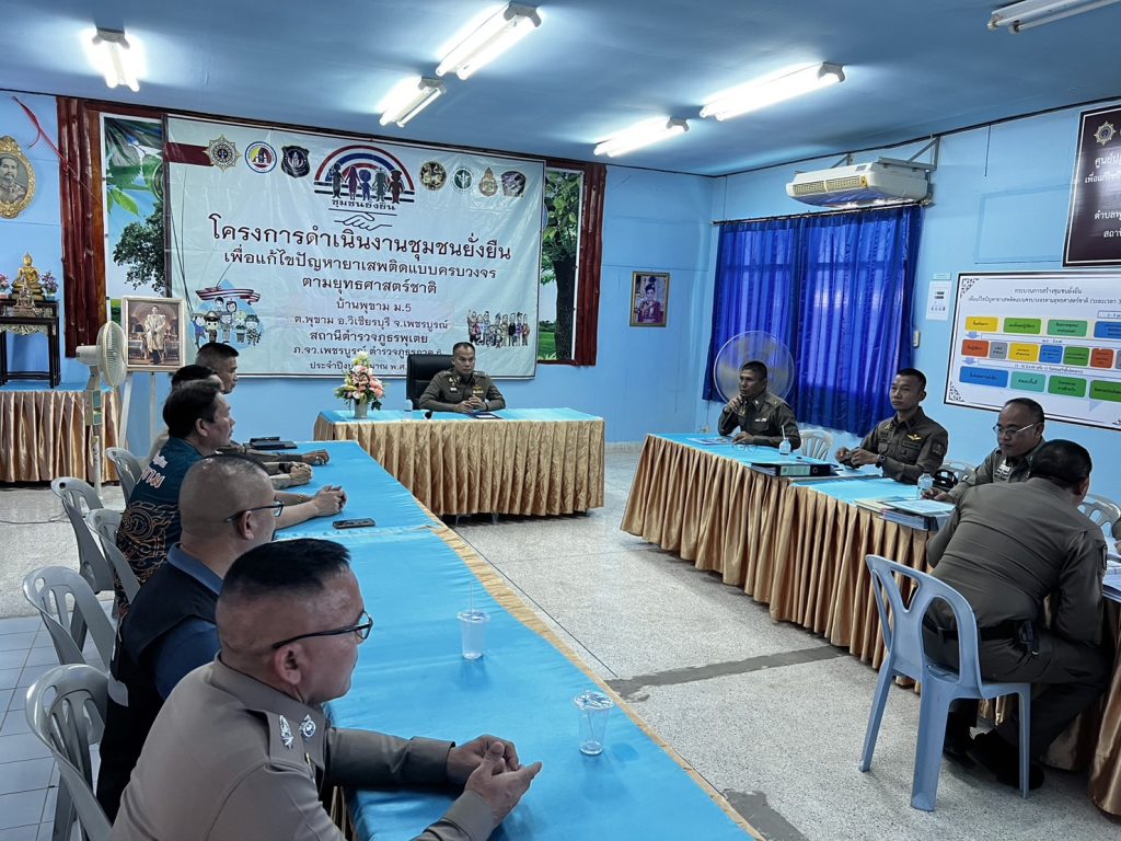 วันนี้ (วันศุกร์ที่ 23 มิ.ย.66) เวลา 13.30 น. พ.ต.อ.คำนึง เหมือนศรีเพ็ง ผกก.สภ.พุเตย พร้อมด้วย พ.ต.ท.รัชพล นาคสุทธิ์ รอง ผกก.ป.สภ.พุเตย/หน.ชป.ชุมชนยั่งยืน สภ.พุเตย , พ.ต.ต.ชาตรี มัชเรศ สวป.สภ.พุเตย/รอง หน.ชป.ชุมชนยั่งยืน สภ.พุเตย และ ชุดปฏิบัติการชุมชนยั่งยืน สภ.พุเตย ร่วมรับการตรวจประเมินผลการดำเนินการโครงการชุมชนยั่งยืนฯ ประจำปีงบประมาณ พ.ศ.2566 ของ ภ.จว.เพชรบูรณ์ โดยมี พ.ต.อ.ธวัชชัย คำแหงพล รอง ผบก.ภ.จว.เพชรบูรณ์ พร้อมคณะ ณ ศูนย์ปฏิบัติการชุมนยั่งยืน สภ.พุเตย ห้องประชุม รพ.สต.พุขาม ทั้งนี้ นายภมรเทพ ศรีปลั่ง ปลัดอำเภอวิเชียรบุรี (ปลัดอำเภอประจำตำบลพุขาม) , นายโกศล วงค์สุนทร กำนันตำบลพุขาม , นายภาสกร สุวรรณพงษ์ จนท.ยาเสพติด รพ.สต.พุขาม/ผู้แทน ผอ.รพ.สต.พุขาม และคณะกรรมการคุ้ม ร่วมต้อนรับคณะตรวจด้วย