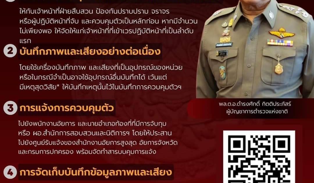 พล.ต.อ.ดำรงศักดิ์ กิตติประภัสร์ ผบ.ตร. กำชับ “แนวทางการปฏิบัติเกี่ยวกับการบันทึกภาพและเสียงในขณะจับและควบคุมตัวตามมาตรา 22 แห่ง พ.ร.บ.ป้องกันและปราบปรามการทรมานและการกระทำให้บุคคลสูญหาย พ.ศ.2565”