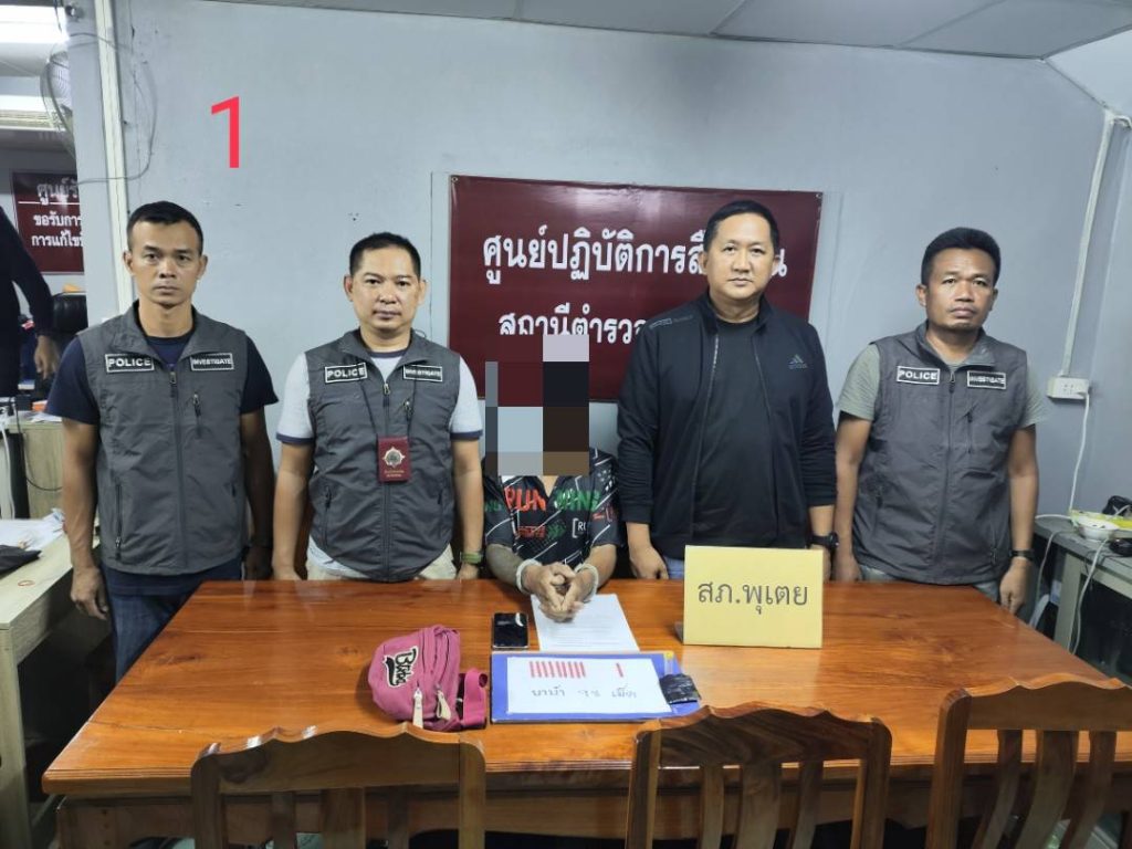 ให้ข้าราชการตำรวจนำโดย พ.ต.ต.อำนาจ เทียมธรรม สว.สส.สภ.พุเตย พร้อมด้วย ด.ต.อภิชาติ กลิ่นประทุม , ด.ต.ณัฐพงษ์ พิลึก , ส.ต.ท.สหกฤช เบ้าเงิน และส.ต.ต.วุฒิพงศ์ จิตแก้ว ได้ร่วมกันจับกุม