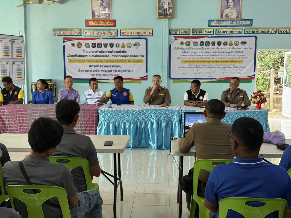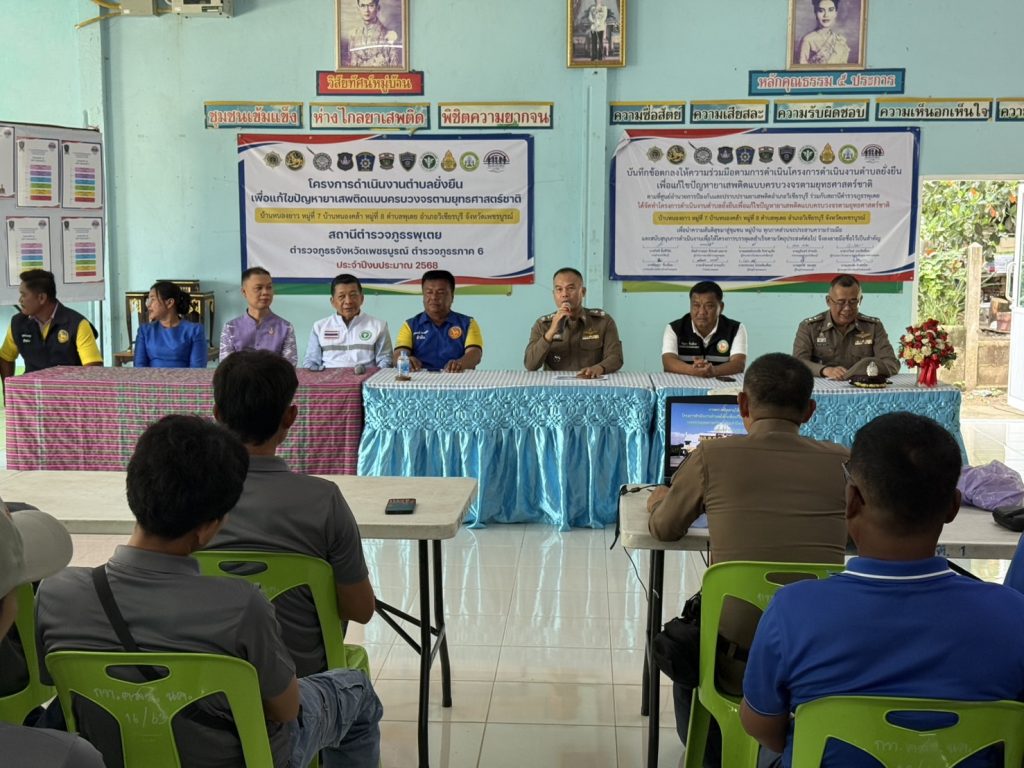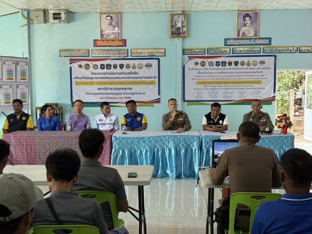 พล.ต.ต.ธวัชชัย คำแหงพล ผู้ทรงคุณวุฒิ สำนักงานตำรวจแห่งชาติ ได้เดินทางมาตรวจติดตามและให้คำแนะนำการดำเนินโครงการตำบลยั่งยืนเพื่อแก้ไขปัญหายาเสพติดแบบครบวงจรตามยุทธศาสตร์ ประจำปีงบประมาณ พ.ศ.2568 ในพื้นที่ตำบลพุเตย โดยมี พ.ต.อ.ธีรพงศ์ ผลนาค ผกก.สภ.พุเตย พร้อมหัวหน้าส่วนราชการในพื้นที่ กำนันผู้ใหญ่บ้าน ร่วมให้การต้อนรับ ณ ศูนย์ปฏิบัติการตำบลยั่งยืน ศาลากองทุนหมู่บ้านหนองคล้า ม.8 ต.พุเตย อ.วิเชียรบุรี จ.เพชรบูรณ์