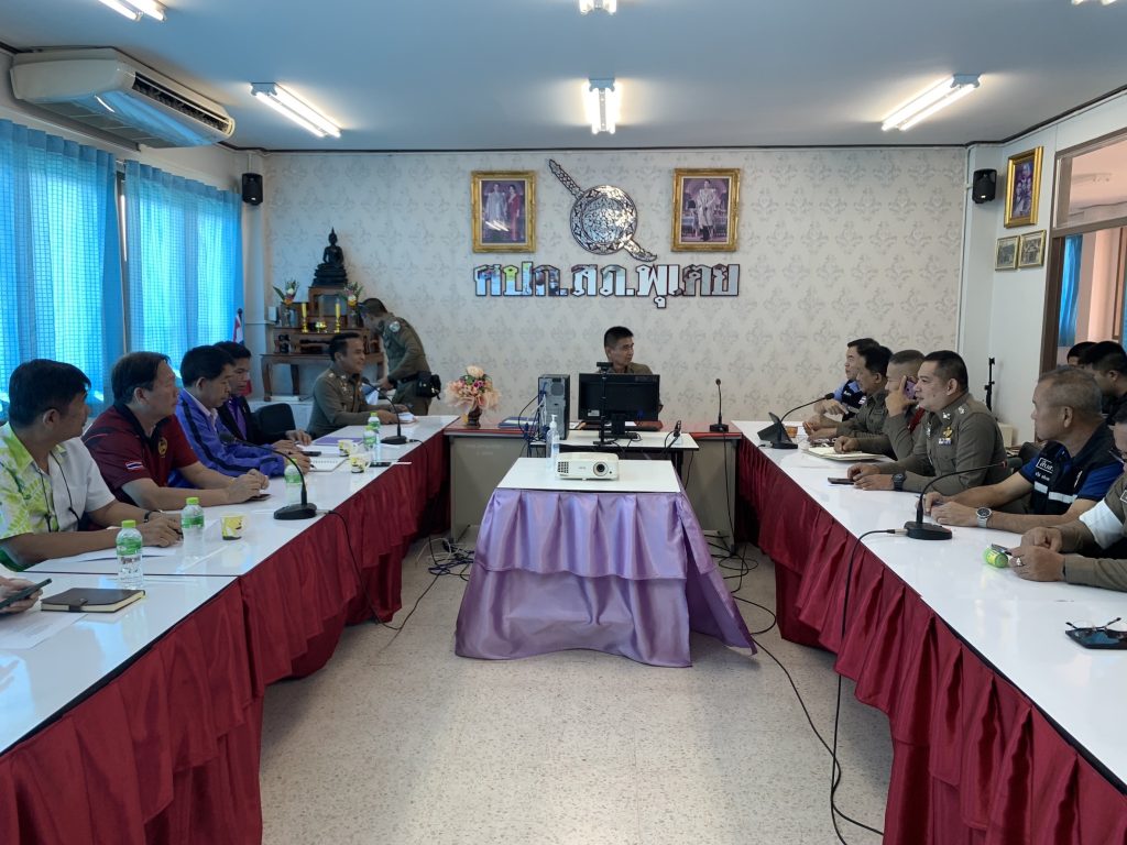 พ.ต.อ.คำนึง เหมือนศรีเพ็ง ผกก.สภ.พุเตย ,พ.ต.ท.รัชพล นาคสุทธิ์ รอง ผกก.ป.ฯ พ.ต.ท.ภัทรชนนท์ ประไพลศาล รอง ผกก.สส.สภ.พุเตย พร้อมข้าราชการตำรวจในสังกัด สภ.พุเตย และเจ้าหน้าที่ฝ่ายปกครอง และผู้บริหารสถานศึกษาร่วมประชุมแนวทางแก้ไขปัญหาการการตรวจสถานศึกษา ณ ห้องประชุม ศปก.สภ.พุเตย
