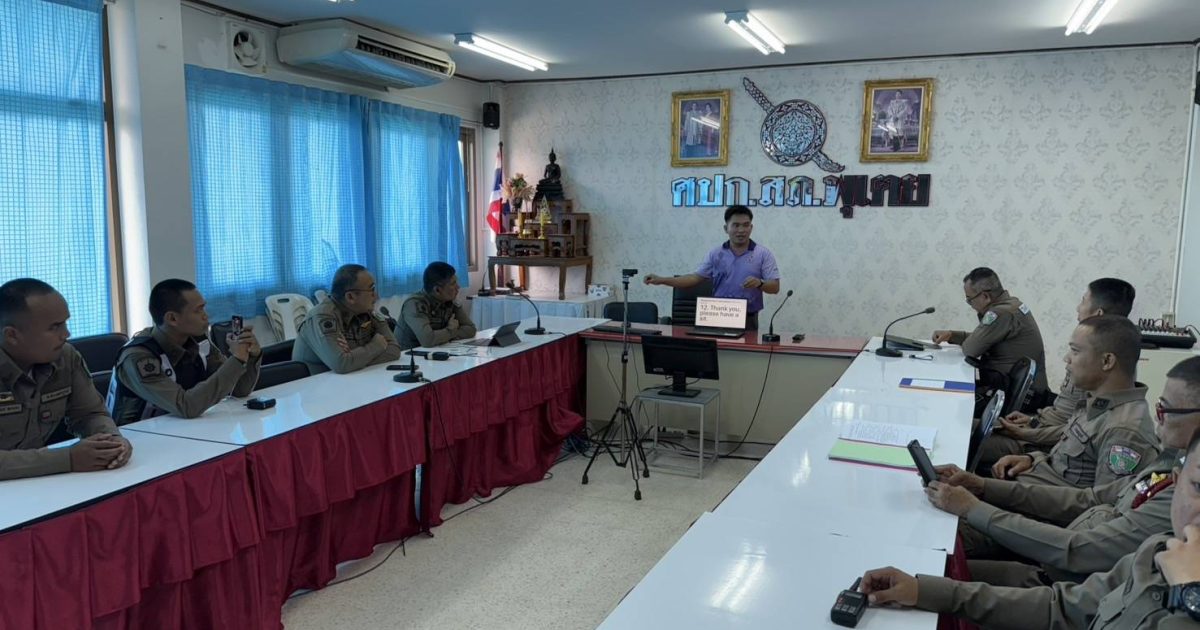 พร้อมด้วยข้าราชการตำรวจในสังกัด เข้ารับการอบรมภาษาต่างประเทศเพื่อการสื่อสารกับนักท่องเที่ยวชาวต่างชาติ โดยมี Teacher Mr.Brian วิทยากรภาษาอังกฤษจากโรงเรียนกุลดิศวิทยานุสรณ์ วิเชียรบุรี เป็นวิทยากรในการอบรมครั้งนี้ ณ ห้องประชุม ชั้น 2 สภ.พุเตย