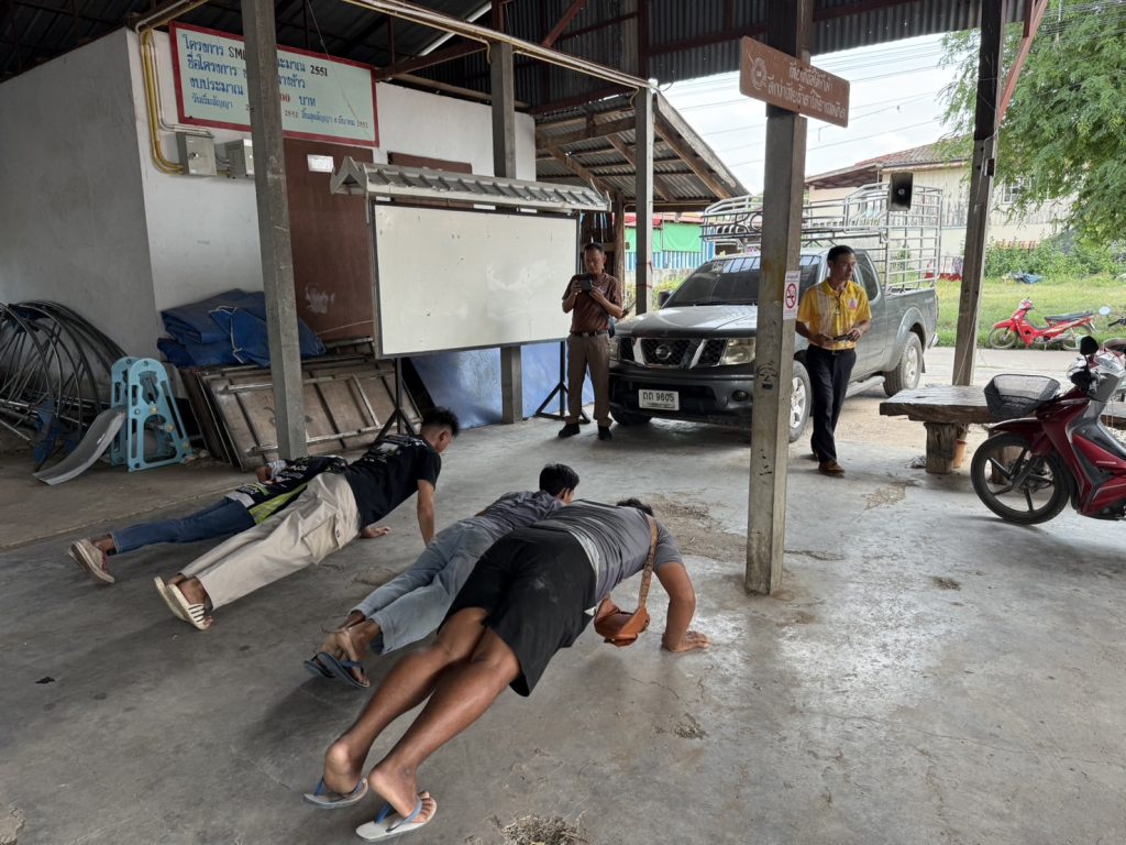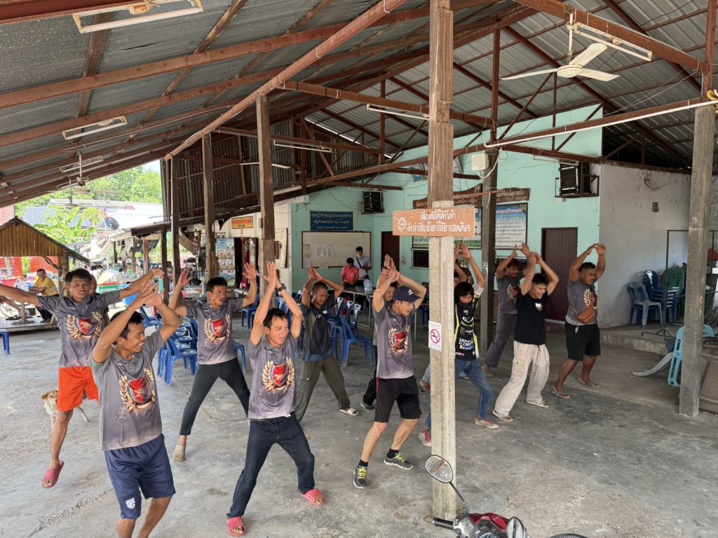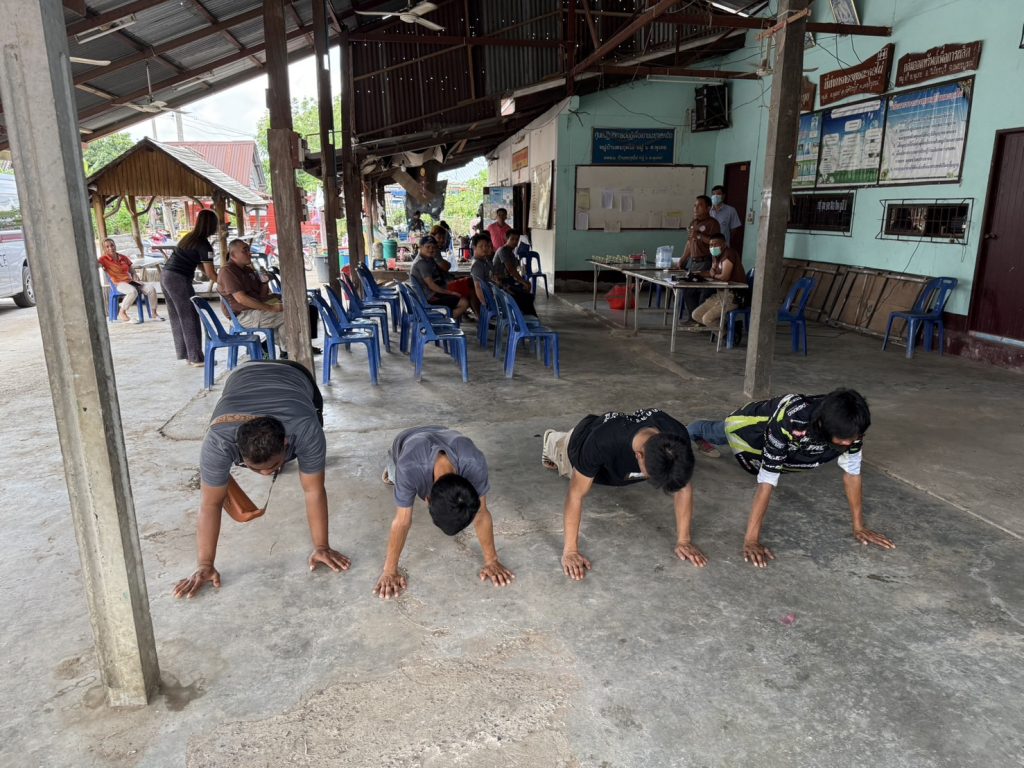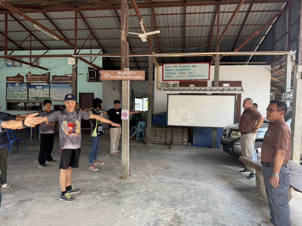 ชุดปฏิบัติการตำบลยั่งยืน สภ.พุเตย พร้อมด้วยผู้นำชุมชน และผู้เข้าโครงการบำบัดฯ ร่วมกันทำกิจกรรมออกกำลังกายเสริมสร้างสุขภาพ และความสามัคคี