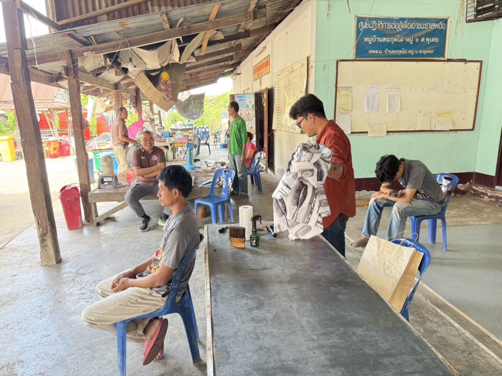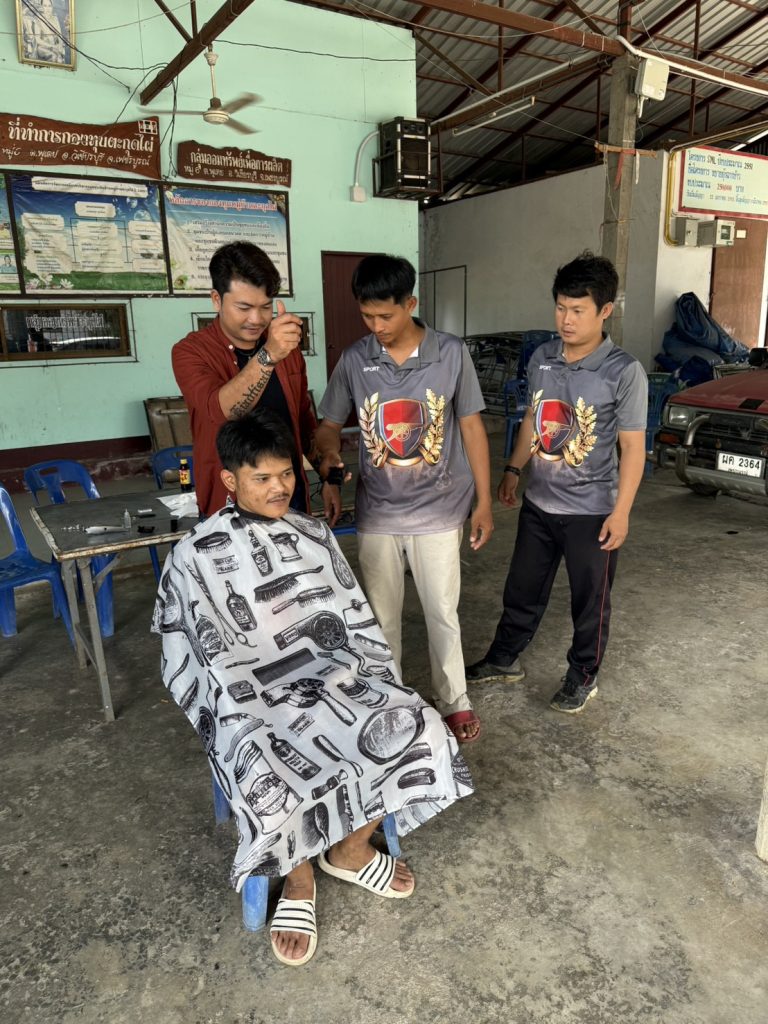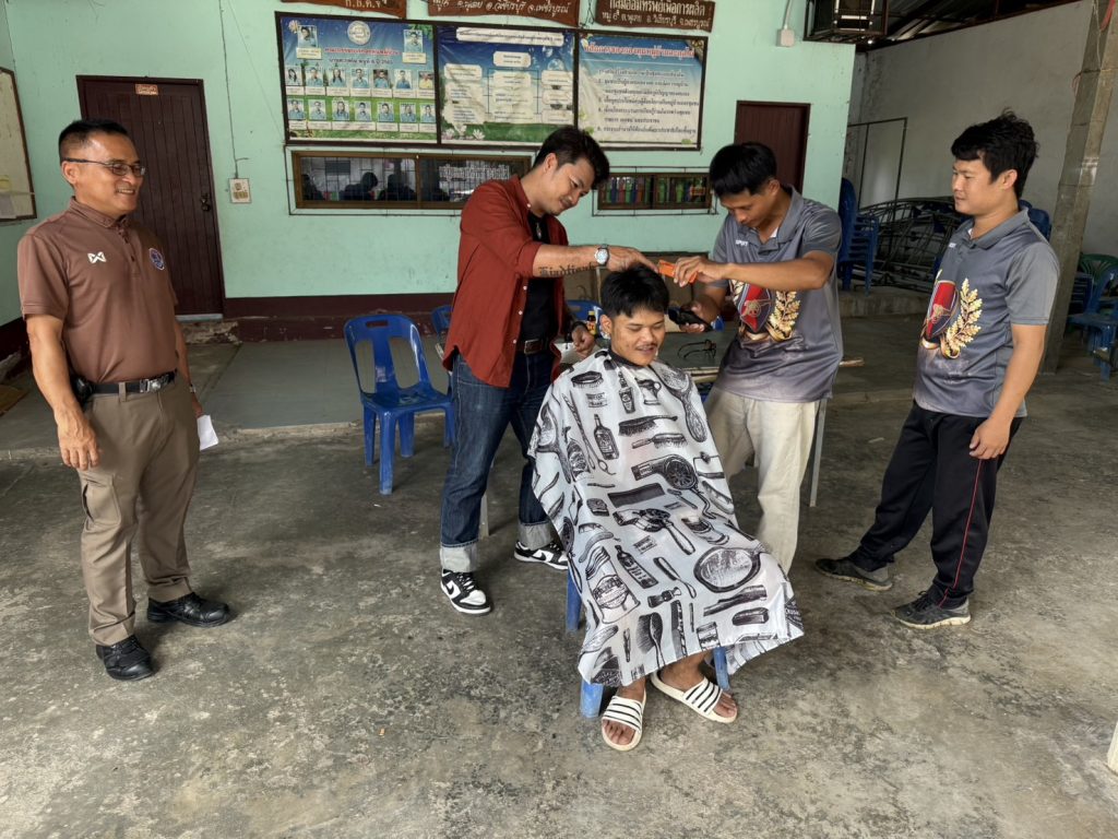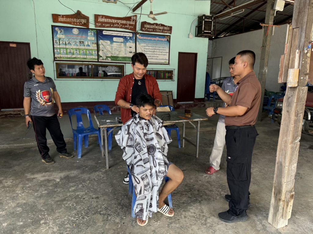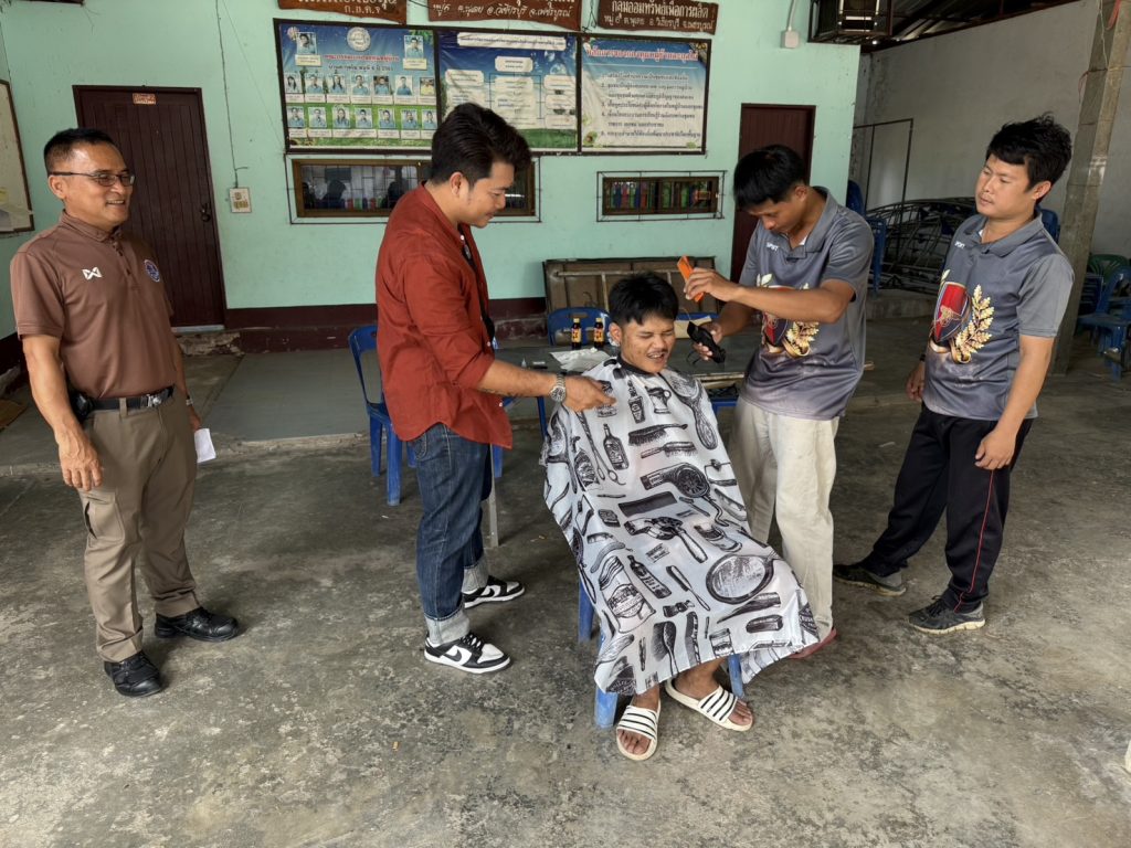 นำผู้เข้ารับการบำบัดตามโครงการดำเนินงานตำบลยั่งยืนเพื่อแก้ไขปัญหายาเสพติดแบบครบวงจรตามยุทธศาสตร์ชาติประจำปี 2568 เข้าร่วมกิจกรรมฝึกการตัดผม ส่งเสริมเป็นอาชีพทางเลือกให้กับผู้ที่เข้ารับการบำบัด โดยผู้บำบัดให้ความร่วมมือเป็นอย่างดี