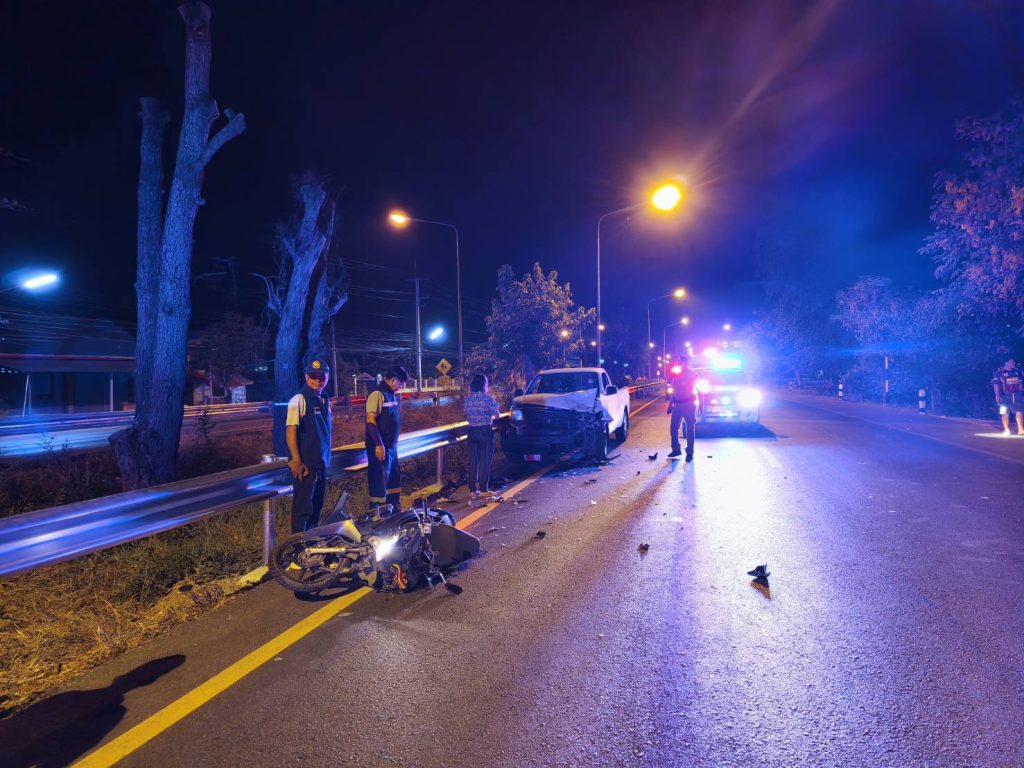 ตรวจสอบเหตุ เป็นเหตุระหว่างรถบรรทุกส่วนบุคคล(กระบะตอนเดียว กับรถจักรยานยนต์ เบื้องต้นผู้ขับขี่รถจักรยานยนต์บาดเจ็บสาหัส ไม่มีทรัพย์สินทางราชการเสียหาย กีดขวางช่องทางจราจร 1 ช่อง ร้อยเวรฯ30 ตรวจสอบที่เกิดเหตุ