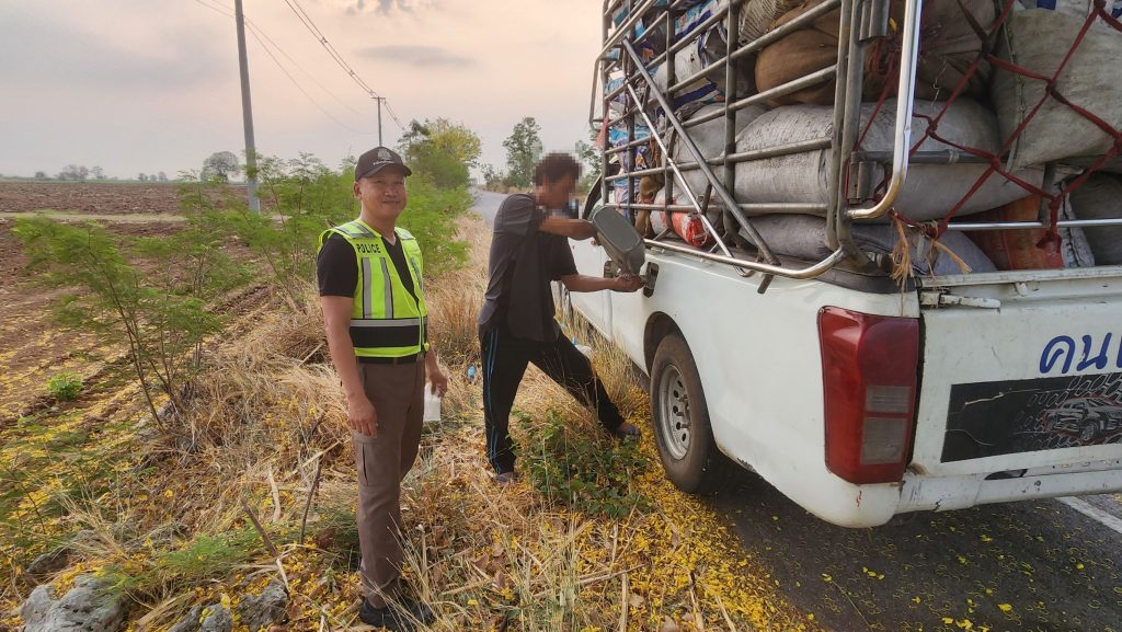 ขอความช่วยเหลือ ว.18 ระบบน้ำมัน 19 April 2026 by admin / ผลการปฏิบัติงานของงานป้องกันปราบปราม,ผลการปฏิบัติงานของงานป้องกันปราบปราม,เมษายน 2569 - งานป้องกันปราบปราม วันที่ (19 เมษายน 69) – เหตุ191 : ขอความช่วยเหลือ – สถานที่เกิดเหตุ : หน้าบริษัทสหฟาร์ม จำกัด ต.ภูน้ำหยด สายตรวจพุขาม ตรวจสอบพบ กระบะคอกสีขาว ดีเเม็ก ว.18 ระบบน้ำมัน สายตรวจตำบลพุขามได้ไปซื้อน้ำมันเชื้อเพลิงมาเติมสามารถเดินทางต่อไปได้